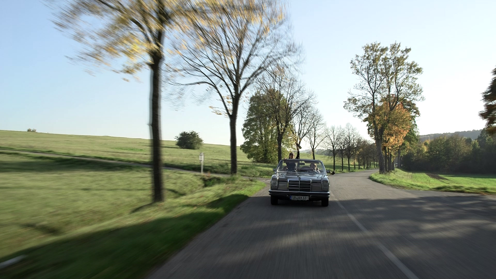 Für das Video zu „Krawattenmann“ ging es im ersten Teil nach Saarbrücken an eine Raststätte und auf eine Landstraße in Frankreich. Hier durften wir Oldtimer fahren. Das hat richtig Spaß gemacht!